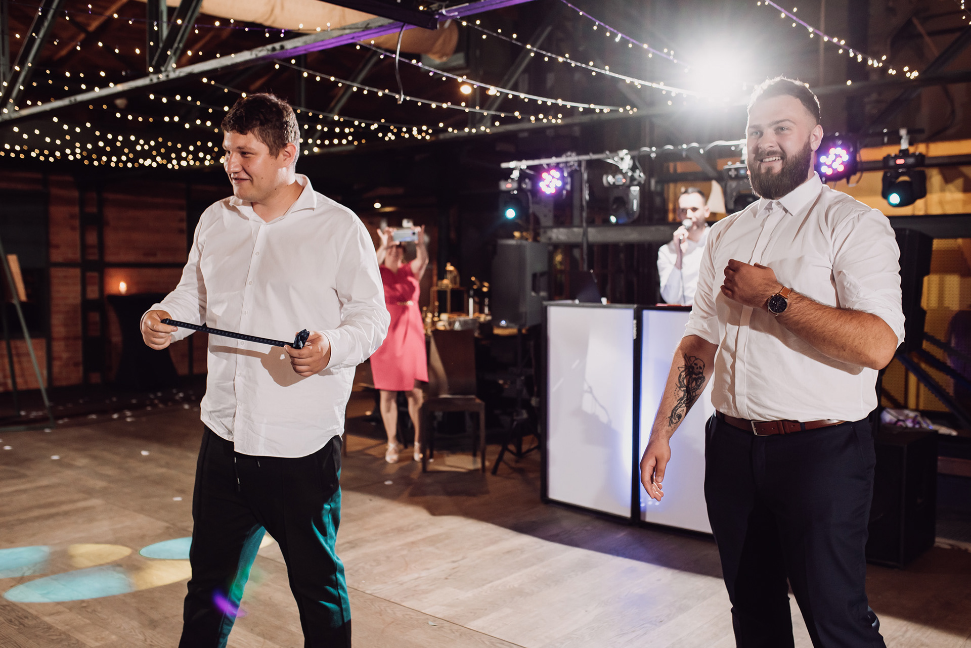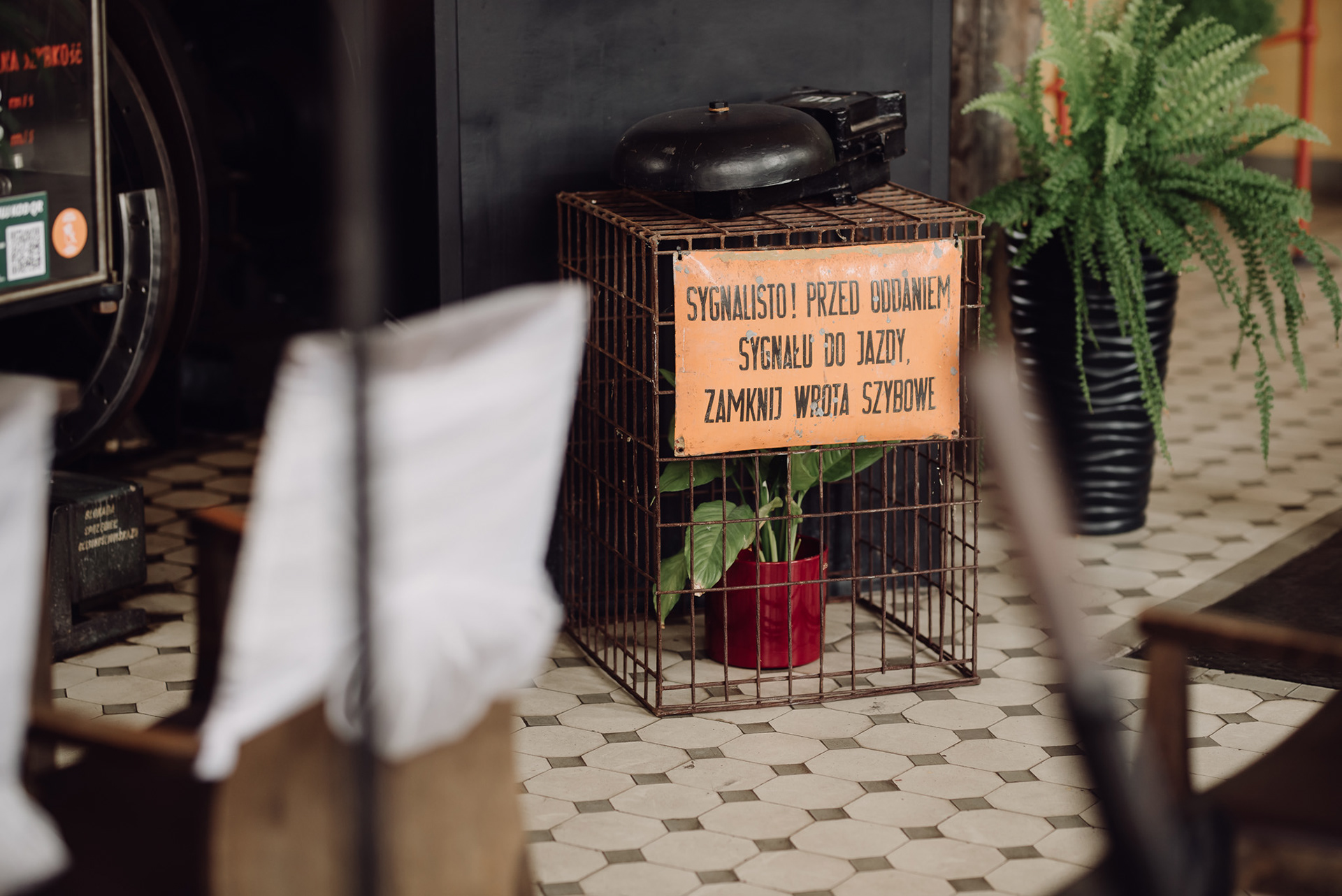 Ceremonia zaślubin w maszynowni na terenie Szybu Maciej była prawdziwym arcydziełem klimatu industrialnego. Surowe ceglane ściany, industrialne detale i wyjątkowe oświetlenie stworzyły niezwykłą scenerię dla ślubnej przysięgi. Po ceremonii goście przenieśli się na salę weselną znajdującą się w dawnym szybie górniczym – idealnym miejscu na przyjęcie w industrialnym stylu. Tort weselny, który wjechał na salę na starym wagoniku kopalnianym, zrobił ogromne wrażenie i był jednym z najczęściej fotografowanych elementów tego dnia.